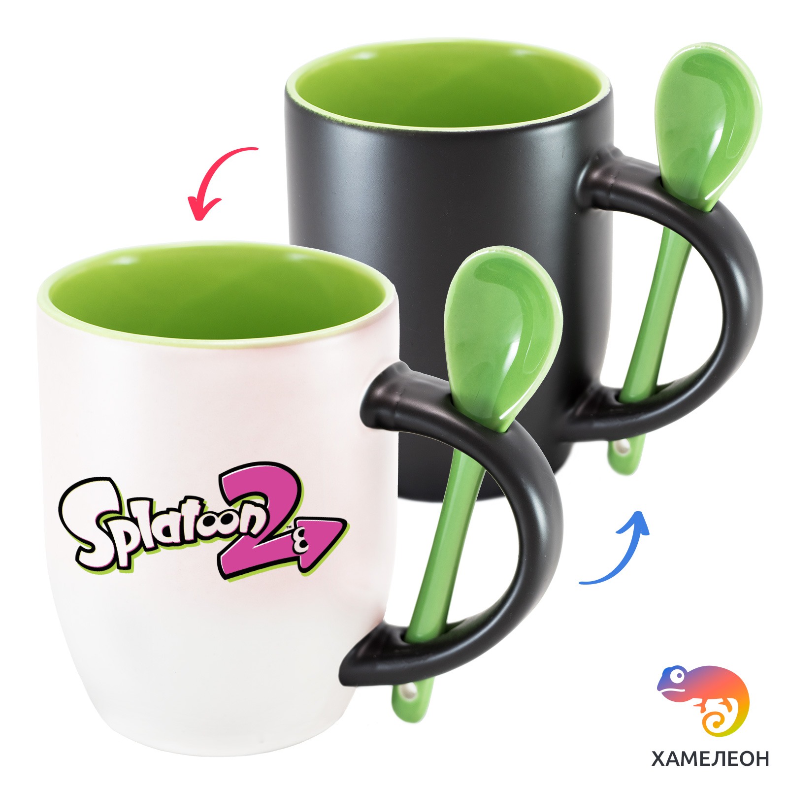 Кружка с принтом является отличным подарком коллеге, другу или самому себе ?Оригинальная кружка хамелеон Splatoon 2 с ложкой приукрасит ваши будни или станет отличным подарком. Кружка изготовлена из высококачественной керамики, а специальный термопегментный слой позволяет ей менять цвет, в зависимости от температуры. Изначально кружка имеет черную заливку, которая становится белой, когда вы наливаете кипяток. Термопегменты становятся прозрачными, начиная с 50°C. Под черным пегментным слоем скрываются необычные рисунки, которые удивят многих.