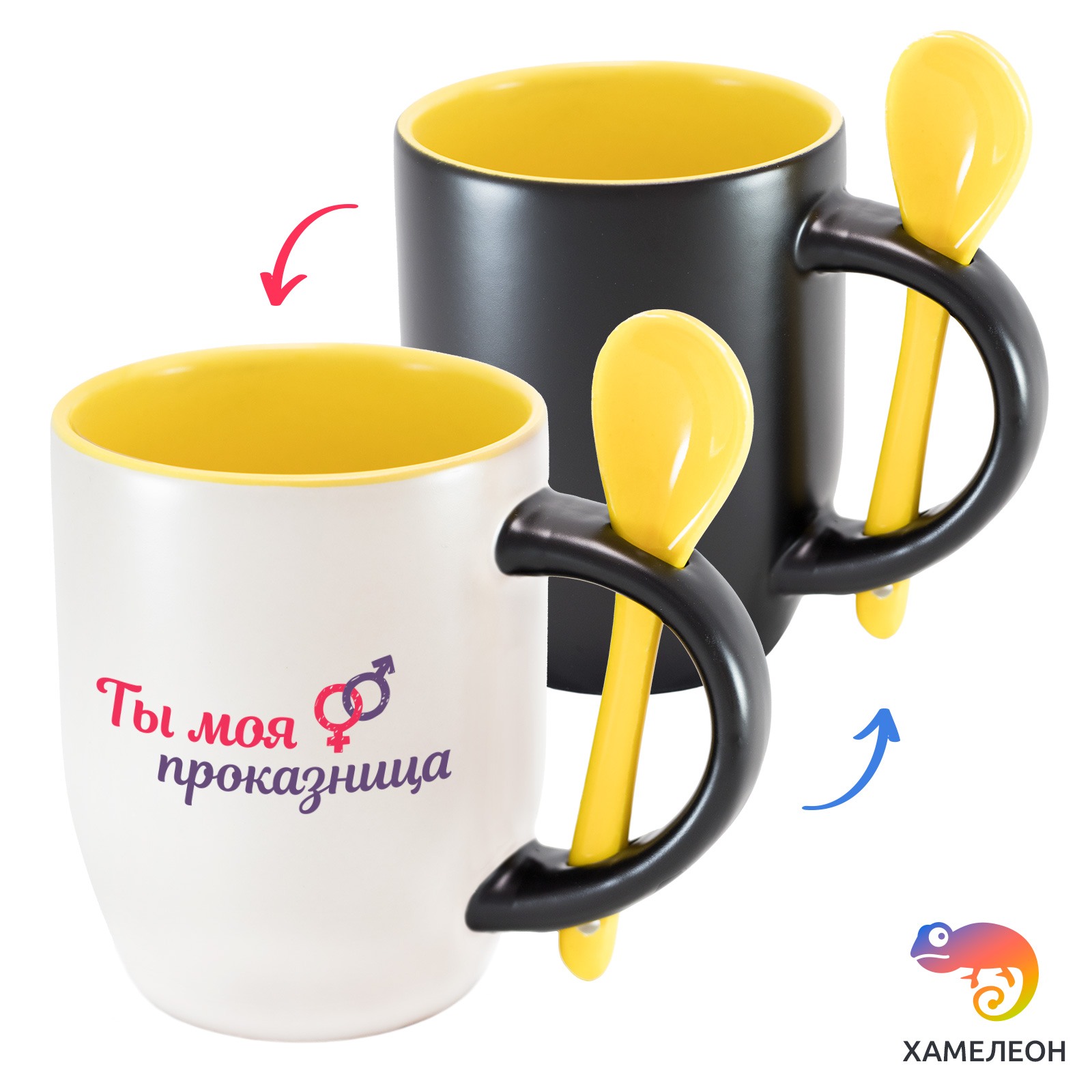 Кружка с принтом является отличным подарком коллеге, другу или самому себе ?Оригинальная кружка хамелеон Ты моя проказница с ложкой приукрасит ваши будни или станет отличным подарком. Кружка изготовлена из высококачественной керамики, а специальный термопегментный слой позволяет ей менять цвет, в зависимости от температуры. Изначально кружка имеет черную заливку, которая становится белой, когда вы наливаете кипяток. Термопегменты становятся прозрачными, начиная с 50°C. Под черным пегментным слоем скрываются необычные рисунки, которые удивят многих.