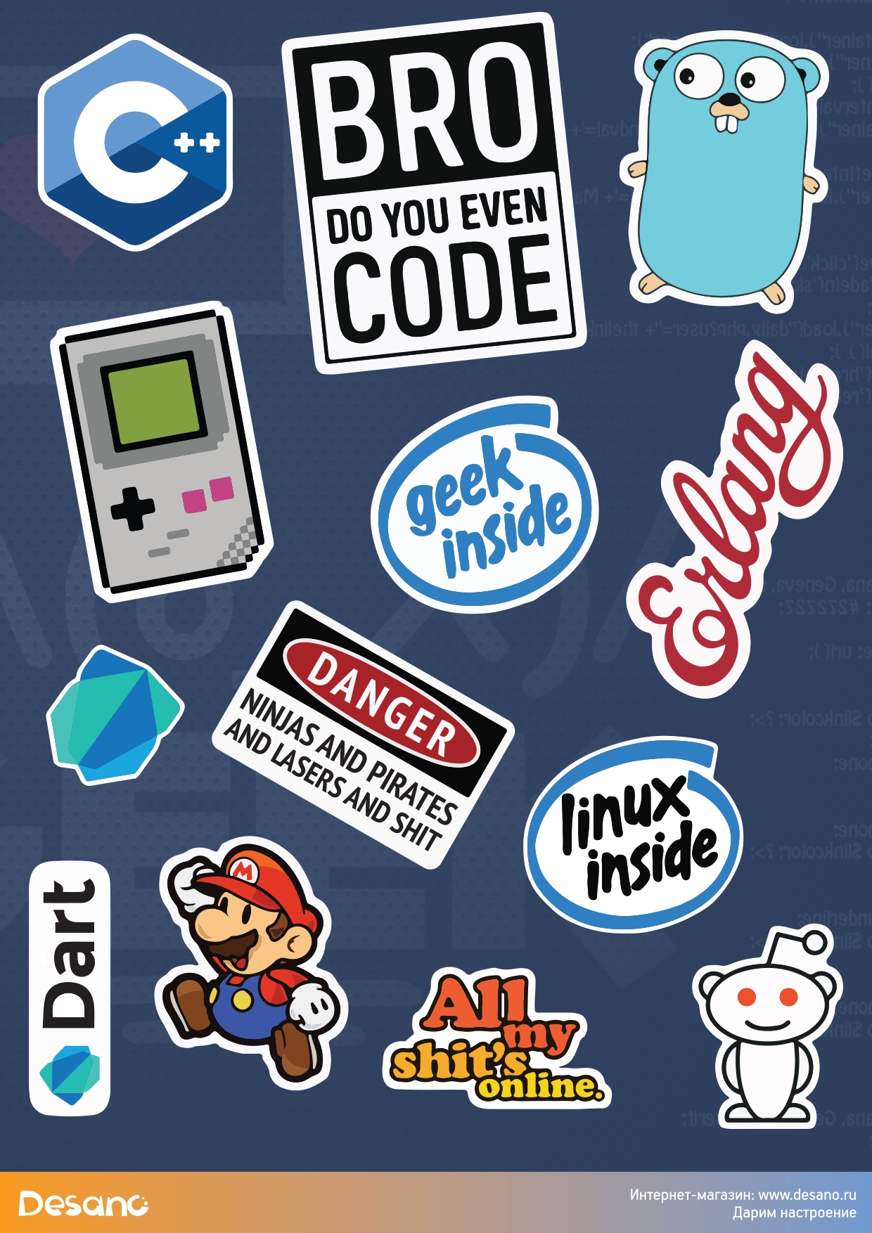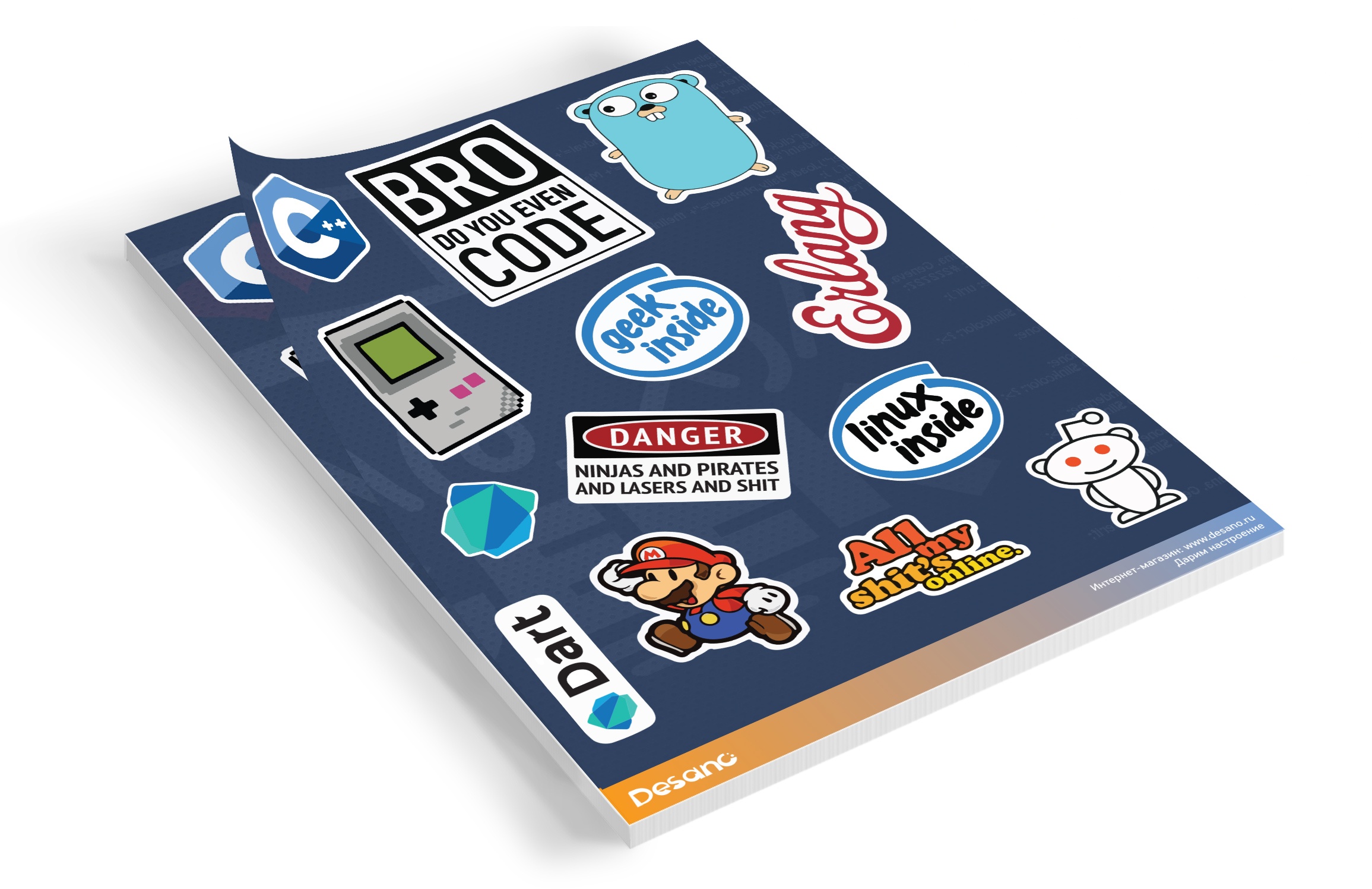Наши стикеры не боятся влаги, их можно протереть влажной салфеткойВиниловый стикер «Набор гика #2» отлично подойдет для придания дополнительной индивидуальности вашему ноутбуку, планшету, телефону или любму другому предмету с гладкой поверхностью. Данные стикеры легко клеятся и снимаются, не оставляя следов на вашем устройстве. Стикеры напечатаны на очень тонкой пленке, которая не увеличивает габариты устройства. Вы можете купить стикер Набор гика #2 в интернет-магазине Desano как для себя, так и в подарок друзьям и родственникам.