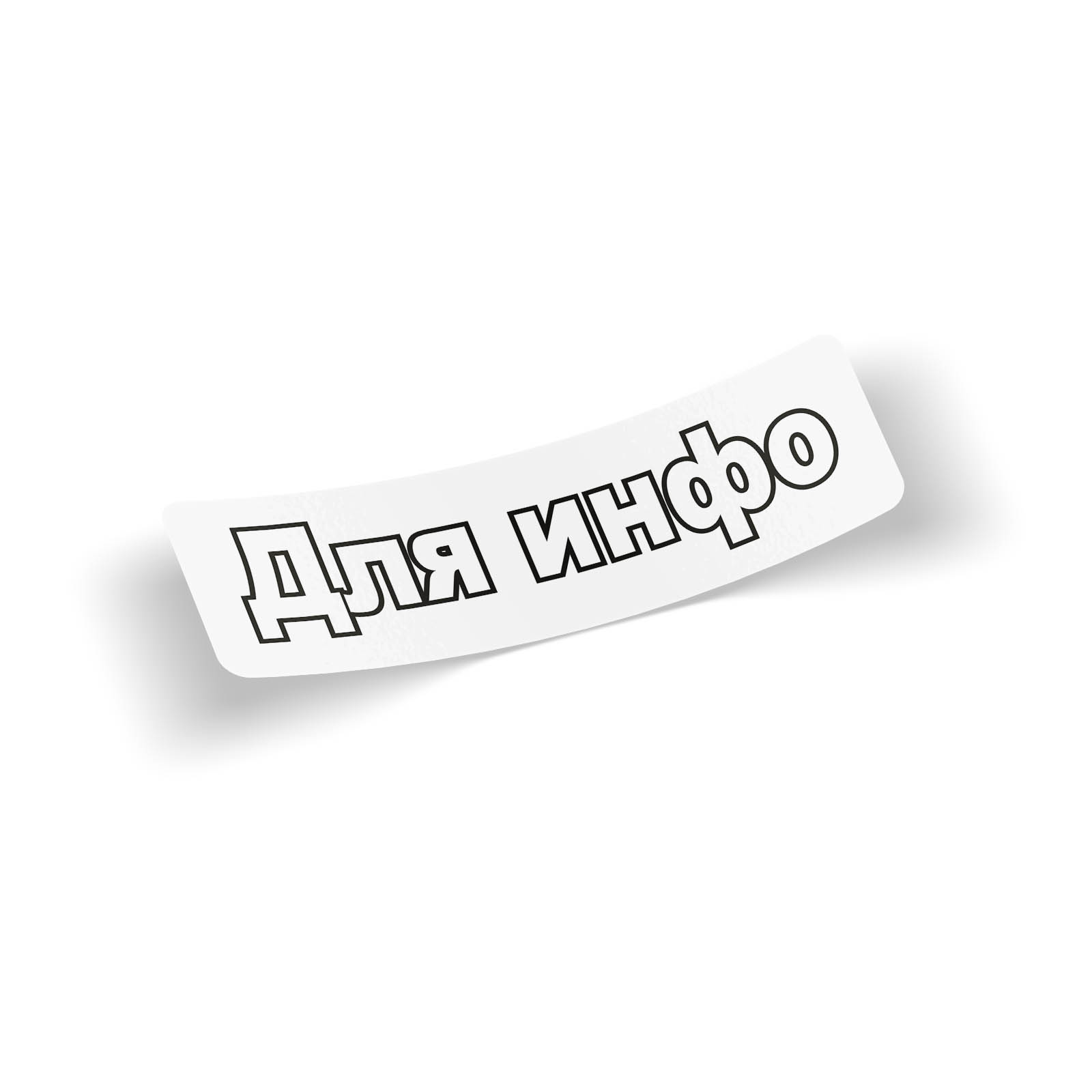 Наши стикеры не боятся влаги, их можно протереть влажной салфеткойВиниловый стикер «Для инфо» отлично подойдет для придания дополнительной индивидуальности вашему ноутбуку, планшету, телефону или любму другому предмету с гладкой поверхностью. Данные стикеры легко клеятся и снимаются, не оставляя следов на вашем устройстве. Стикеры напечатаны на очень тонкой пленке, которая не увеличивает габариты устройства. Вы можете купить стикер "Для инфо" в интернет-магазине Desano как для себя, так и в подарок друзьям и родственникам.